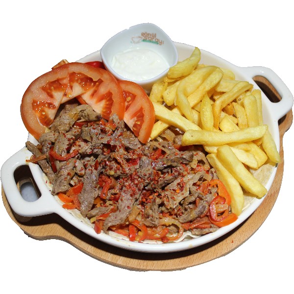 Jülyen Et ( İç Bonfile ), Kapya Biber, Yeşil Biber, Soğan, Soya Sosu, Patates Cips, Süzme Yoğurt ve Özel Soslar ile servis edilir.